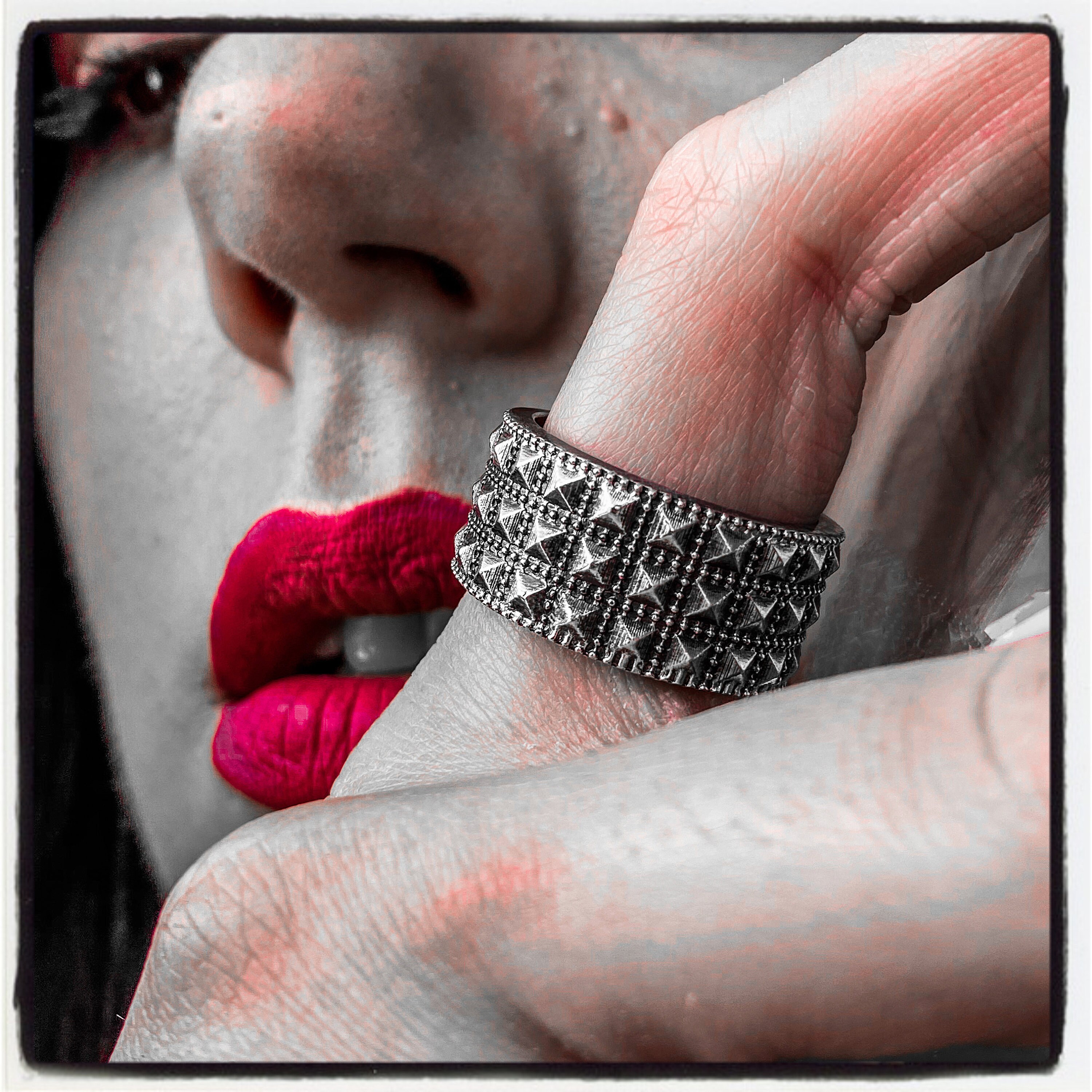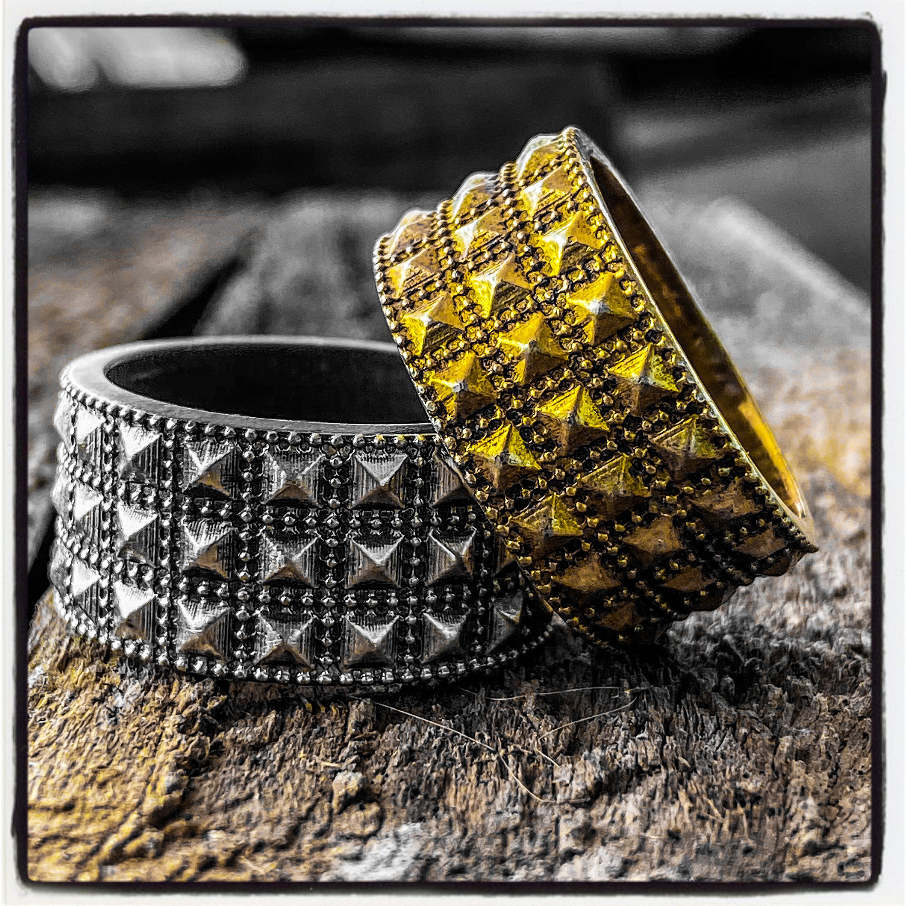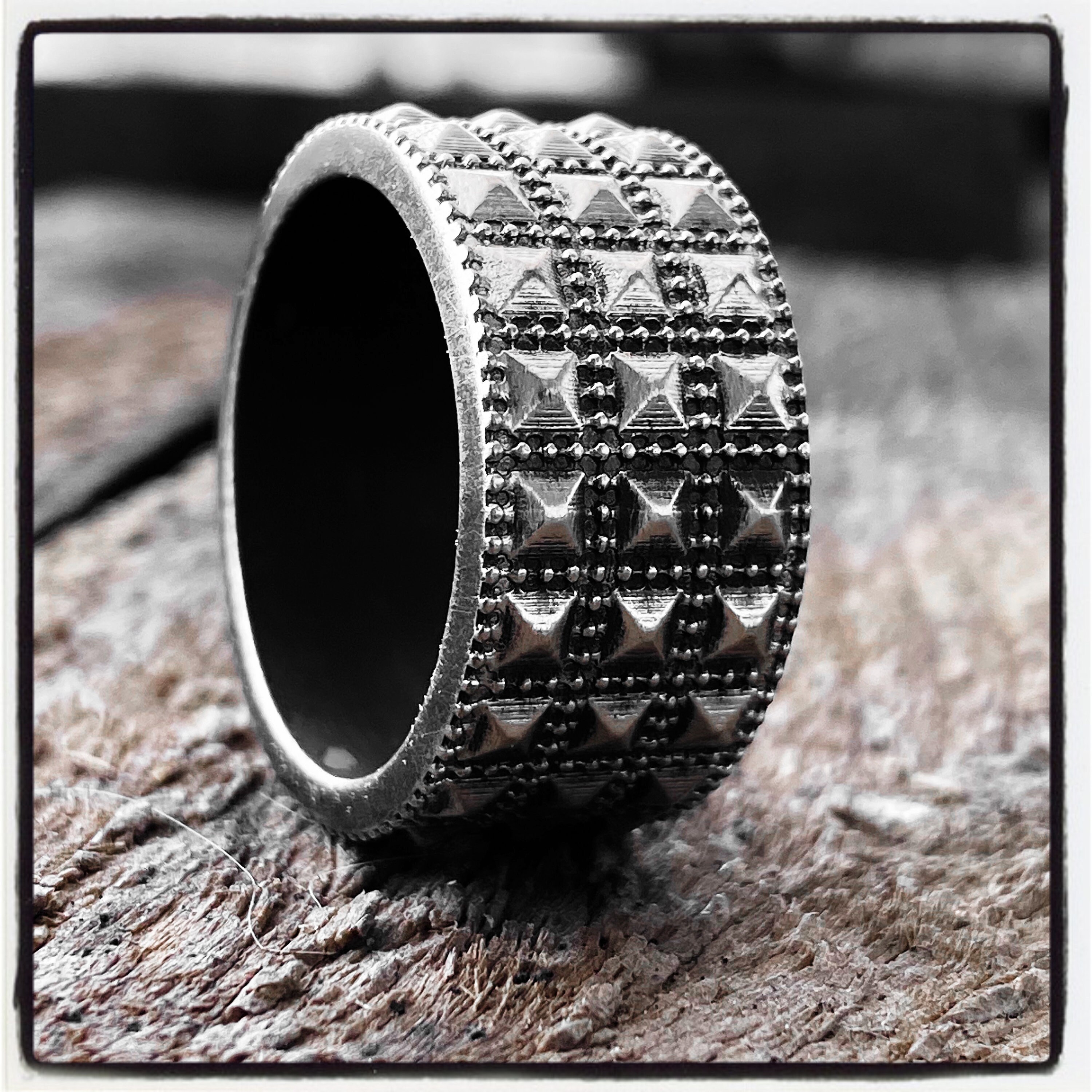 This is a genuine Handmade Pyramid Studded Band Ring handmade by World Renowned Award Winning Master Goldsmith Marcus Platrides on the Greek Island of Cyprus in Europe.