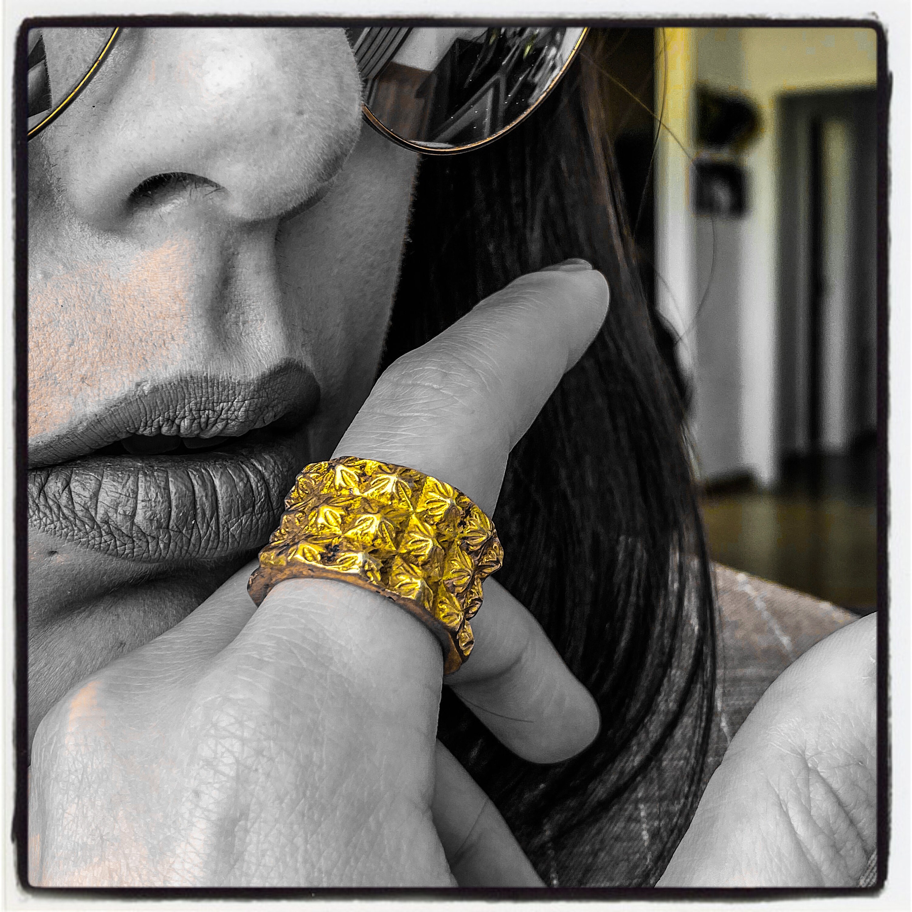 The ring is available in a variety of Precious Metals and Colors ranging from Pure Sterling Silver to Pure 18κ and 9κ Gold.
