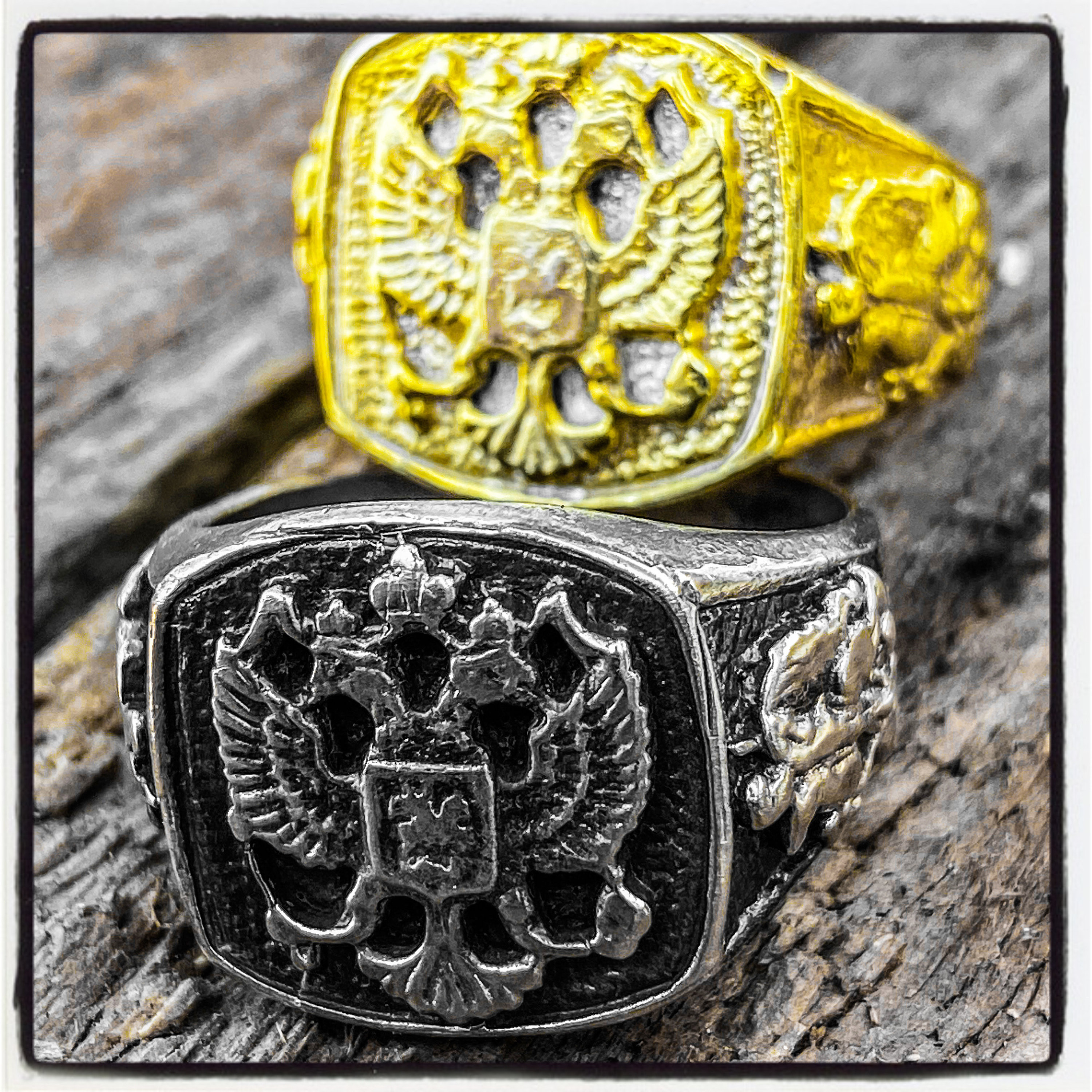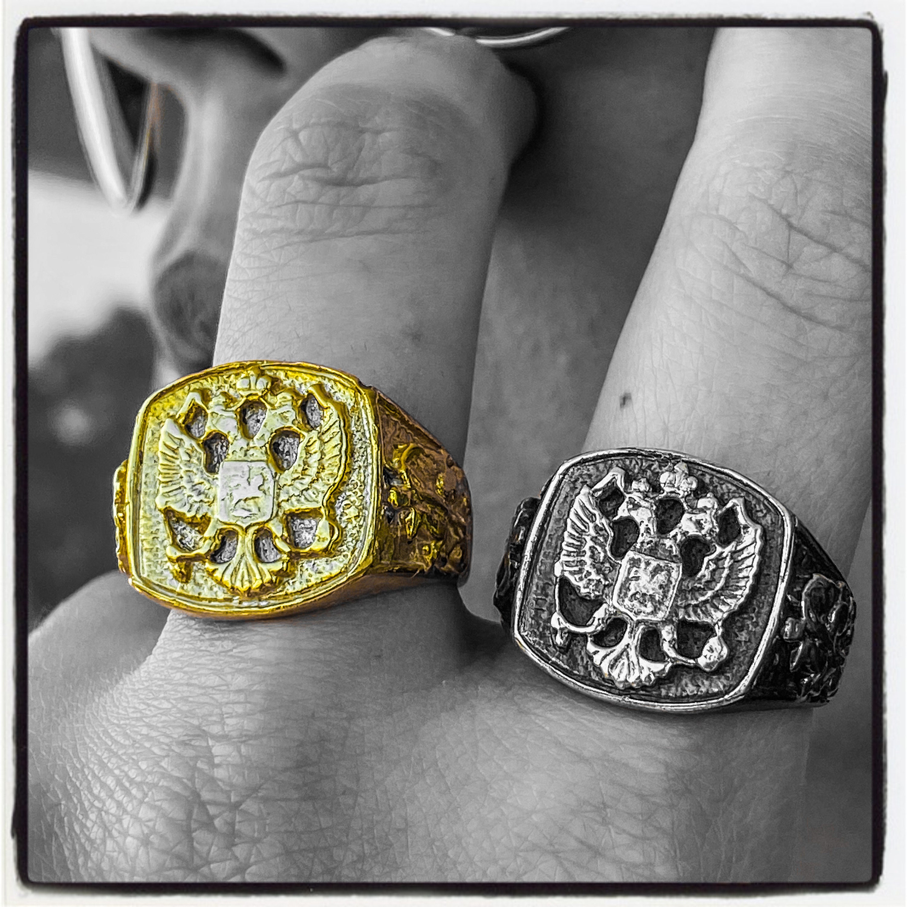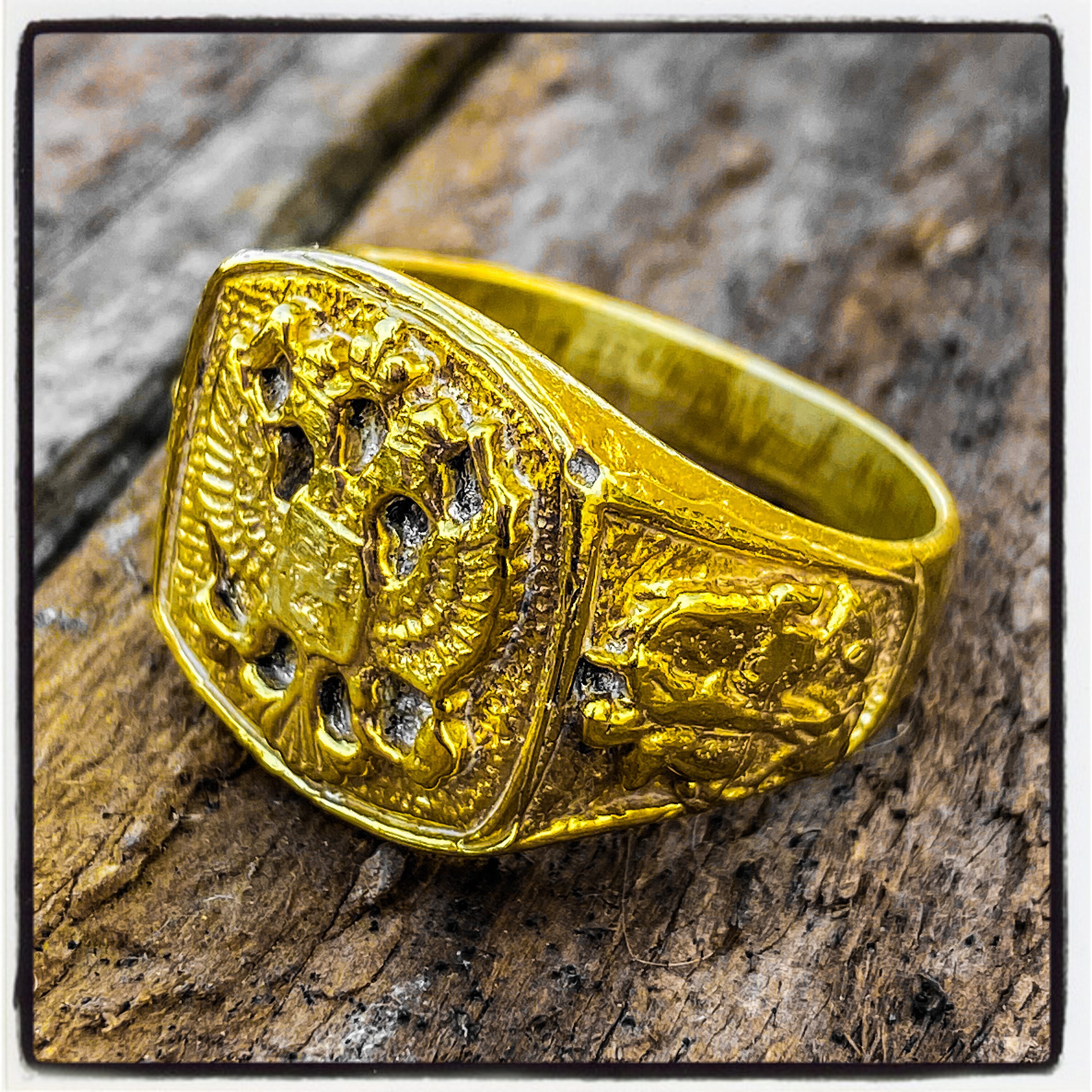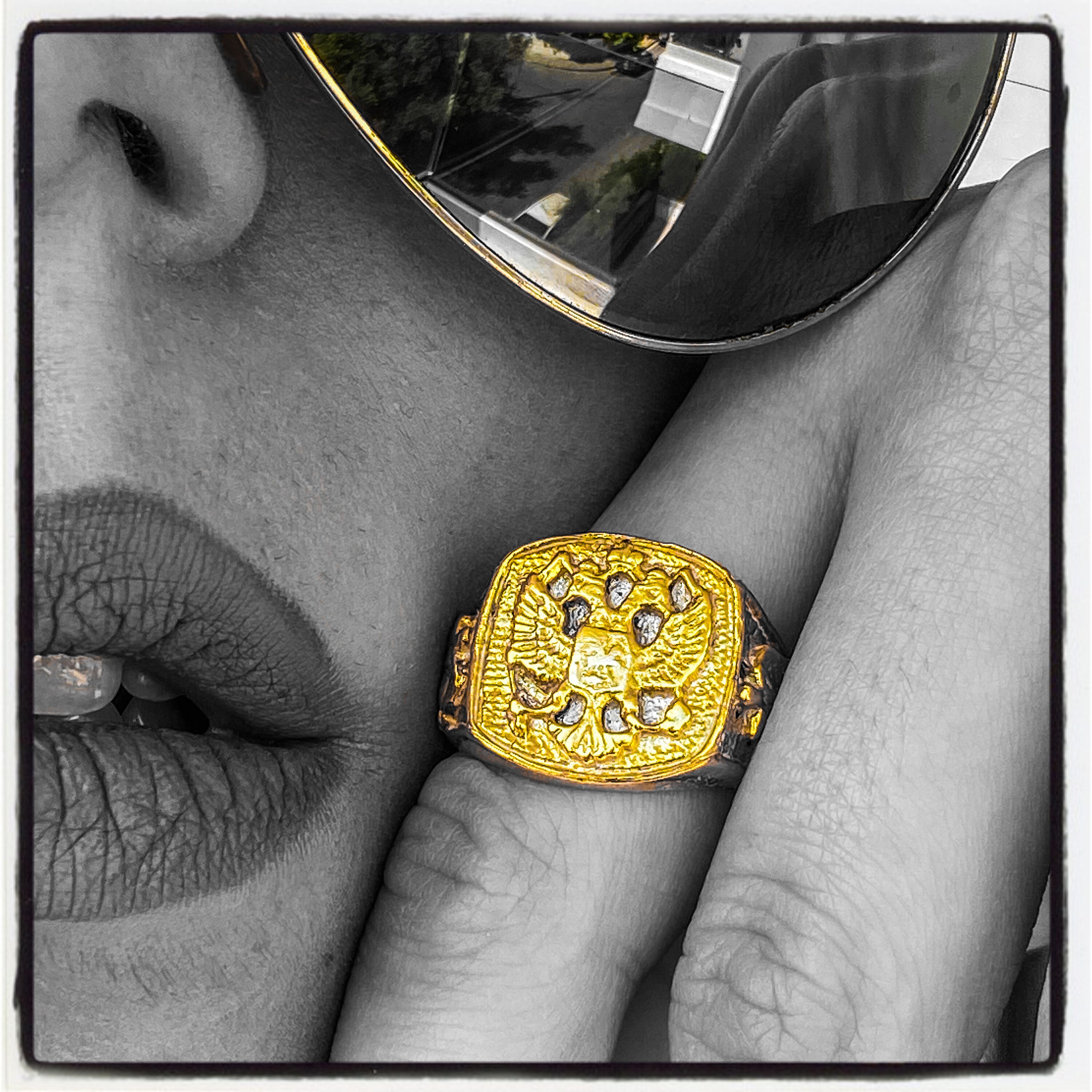 Dies ist eine echte handgemachte Imperial Double Headed Eagle Ring handgefertigt von World Renowned Award Winning Master Goldsmith Marcus Platrides auf der griechischen Insel Zypern in Europa.