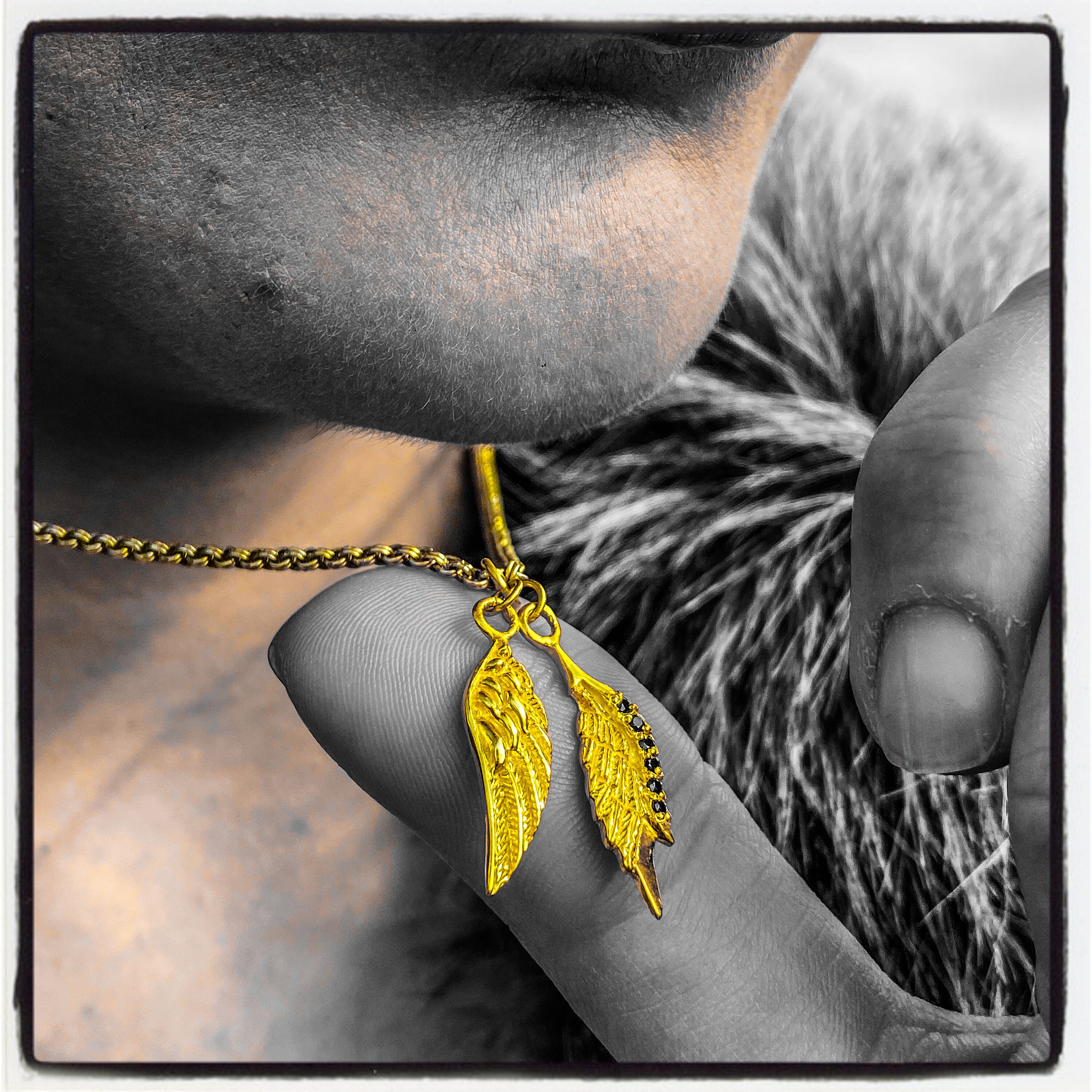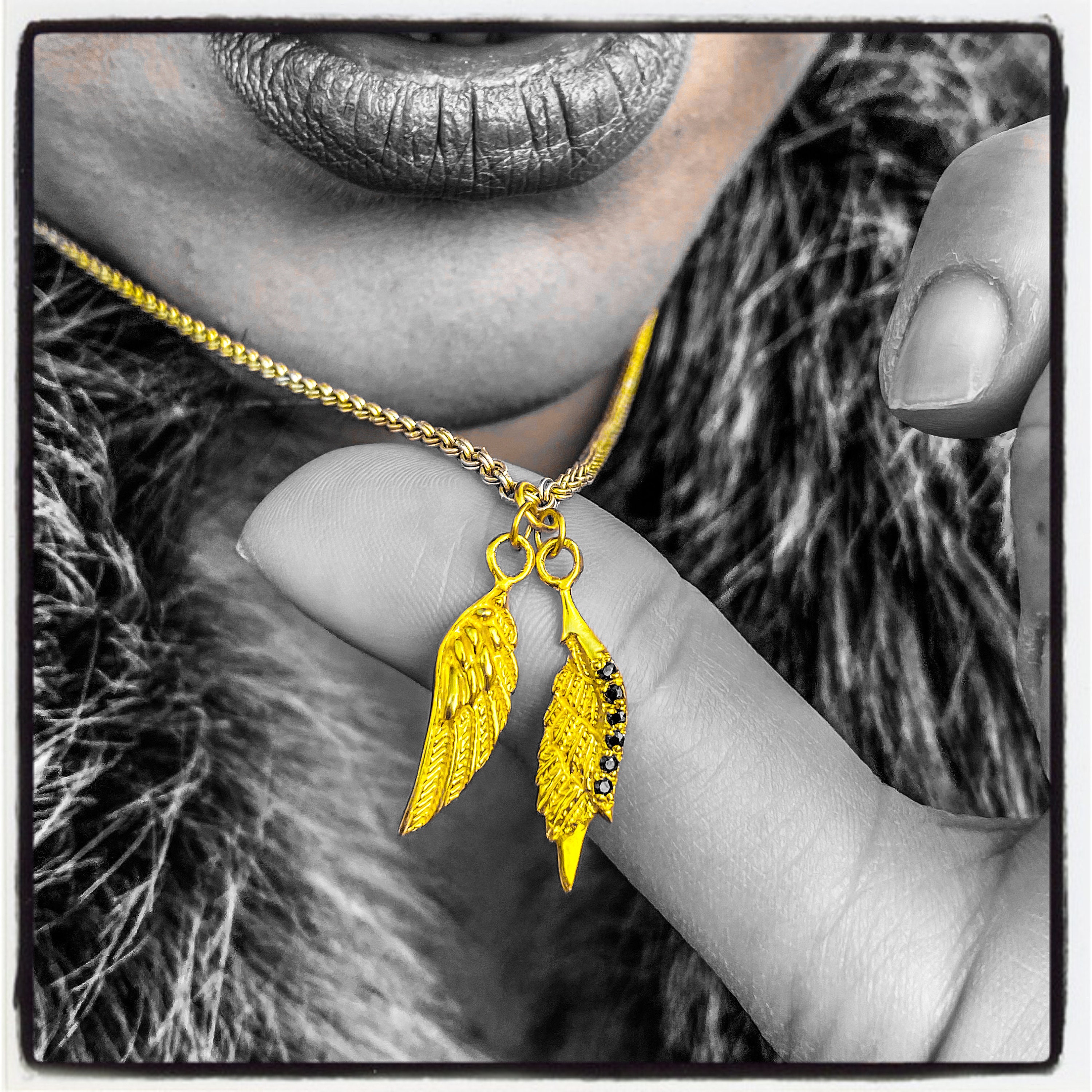 Dies ist ein echter handgefertigter Flügel Anhänger mit Edelsteinen Ihrer Farbwahl verkrustet, handgefertigt von World Renowned Award Winning Goldsmith Marcus Platrides auf der griechischen Insel Zypern in Europa.