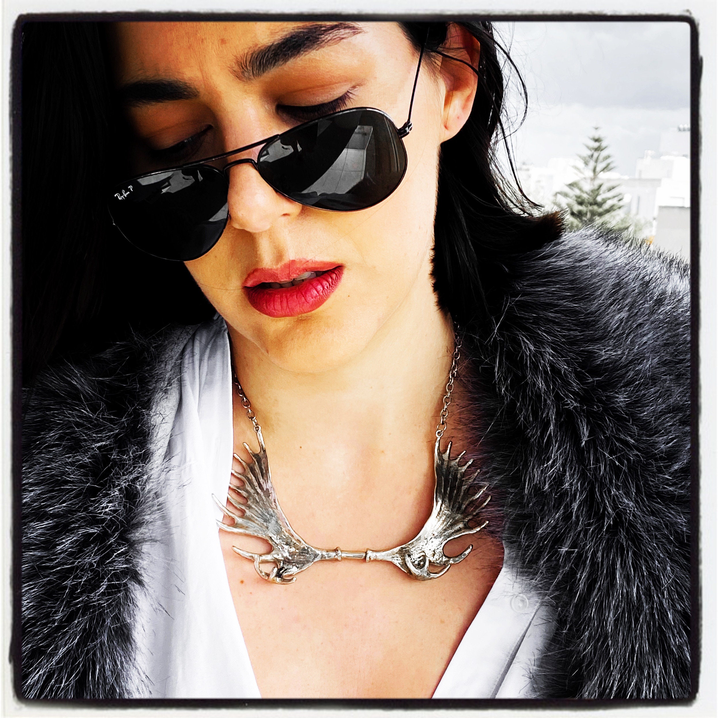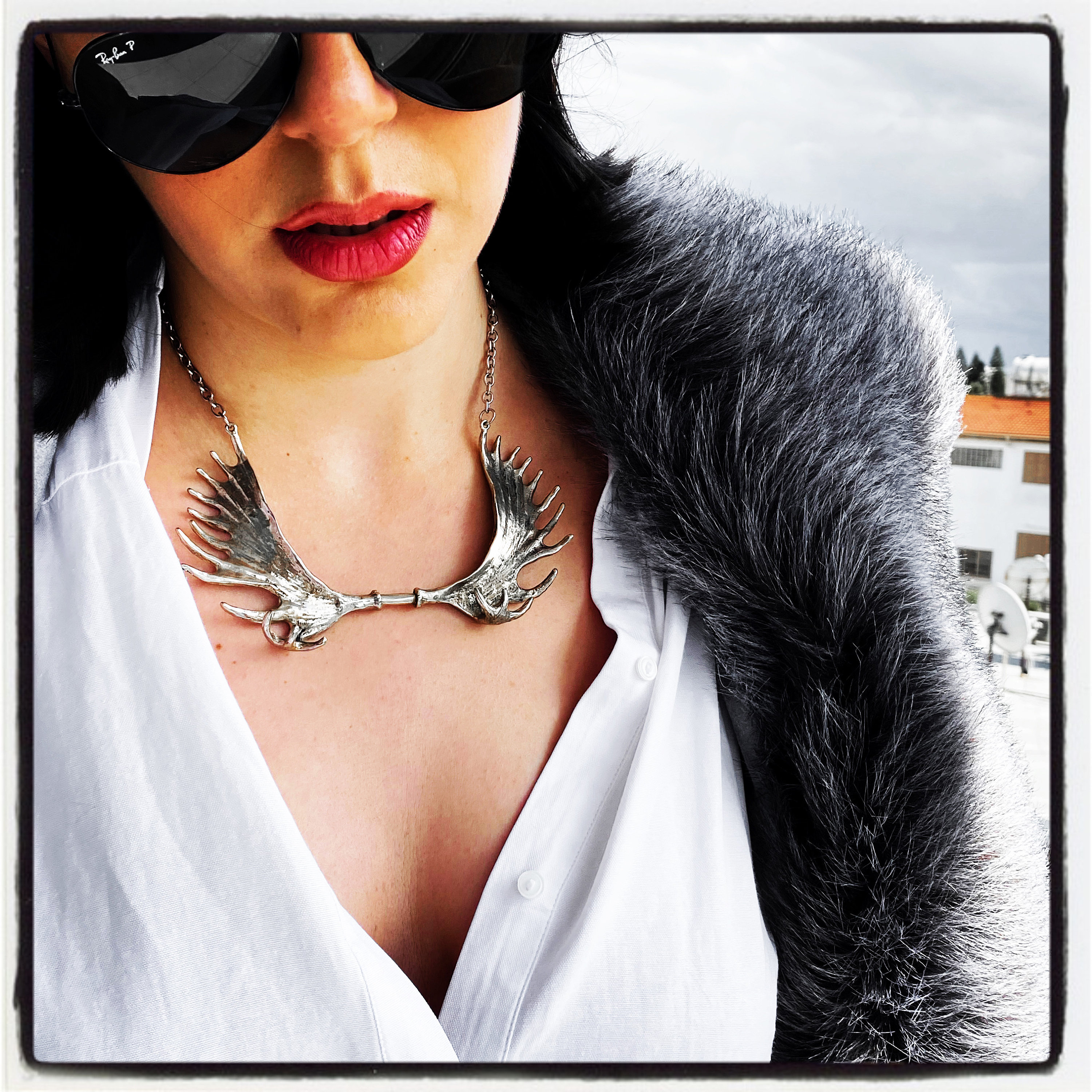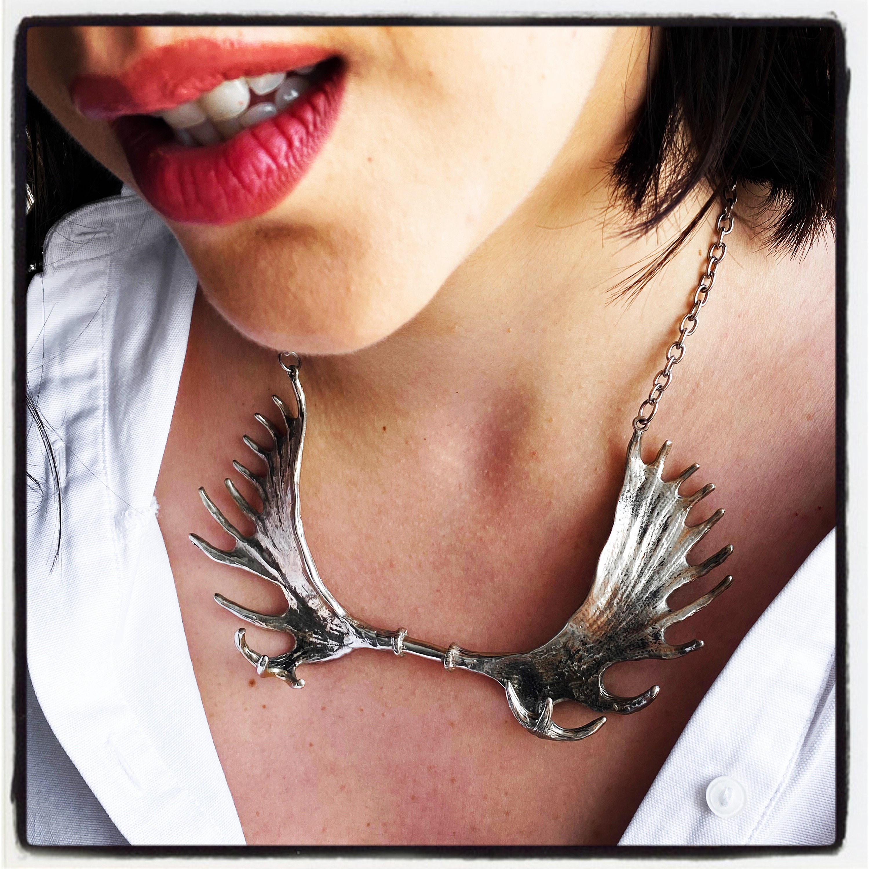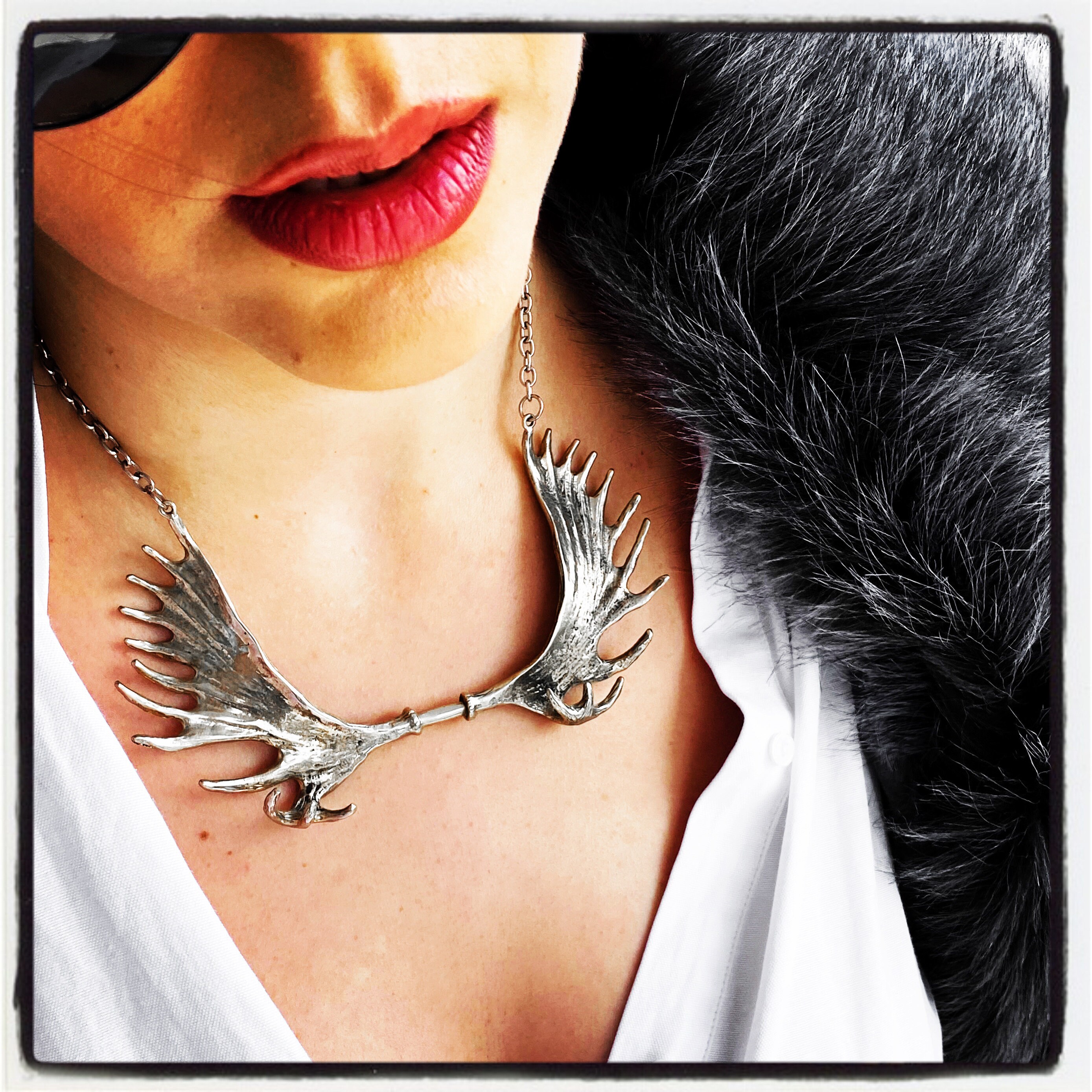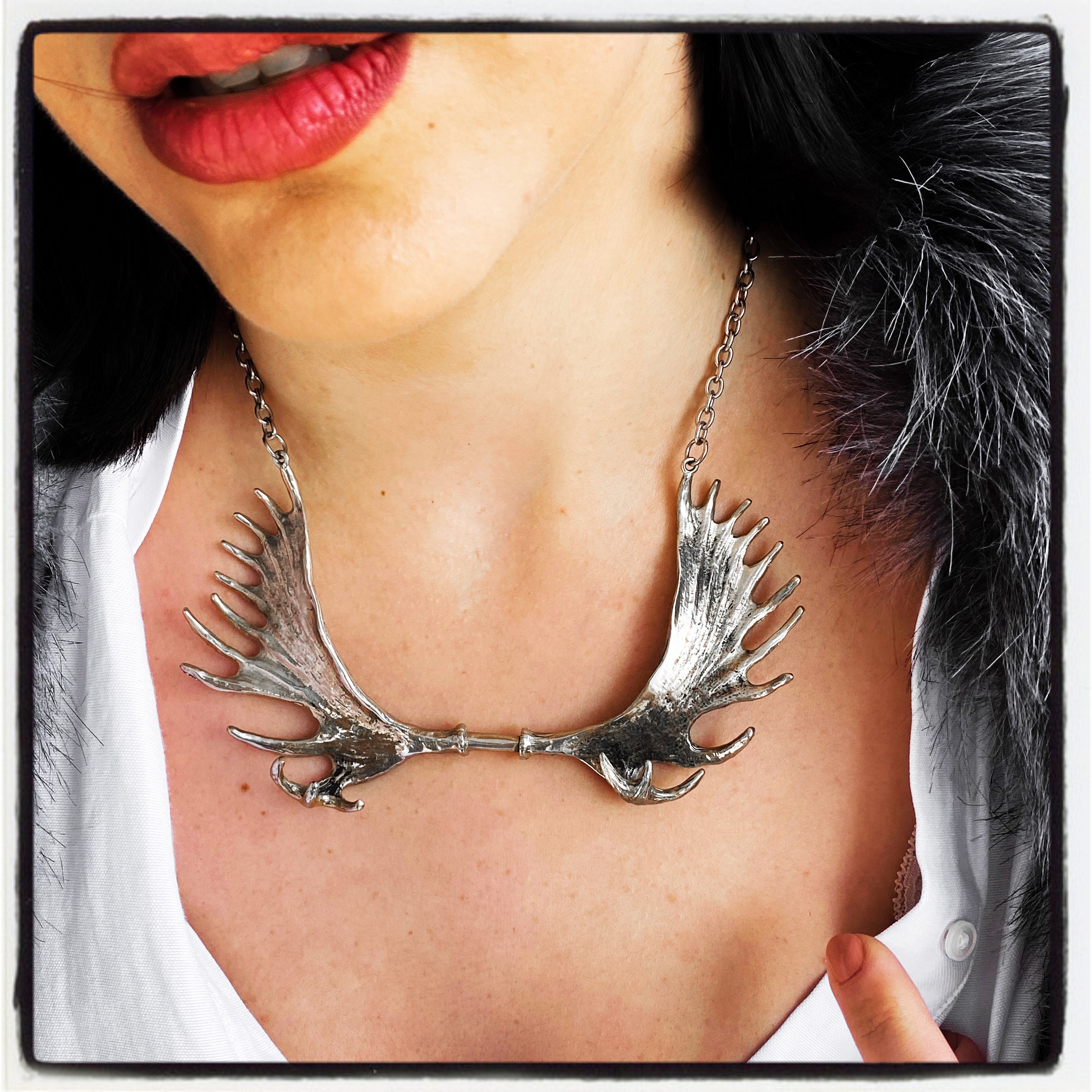 Dies ist eine echte handgemachte Elchgeweih Halskette, von Hand geschnitzt von World Renowned Award Winning Goldsmith Marcus Platrides auf der griechischen Insel Zypern in Europa.
